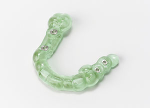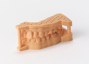 ベラシアSA形態を採用した前歯部・臼歯部一体型の連結型人工歯です。 デジタル製作した床へ使用していただくことで、ベラシアSA フルアーチの咬合関係をほぼそのまま総義歯に再現でき、これまで困難であった精度の高い義歯を短時間で作製することが可能になります。